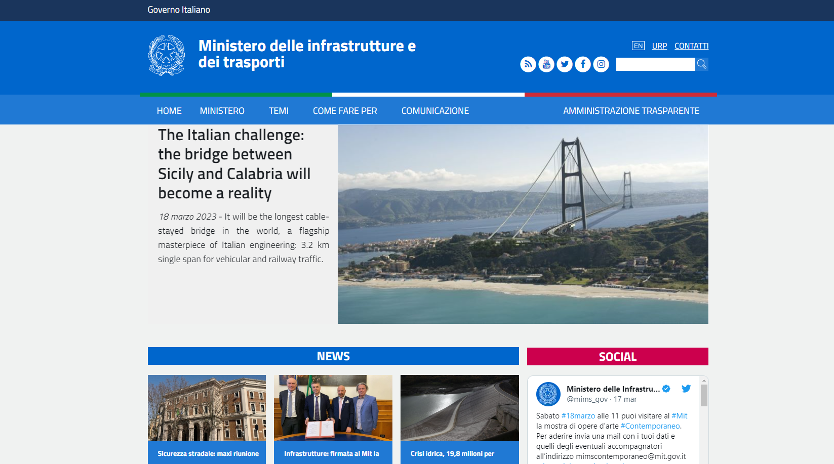 Il messaggio è forte e chiaro. Ed ha lo scopo di arrivare il più lontano possibile. Basti dire che le parole che aprono il sito internet del Ministero delle Infrastrutture (apri sito) e dei trasporti, sono pubblicate anche in inglese.