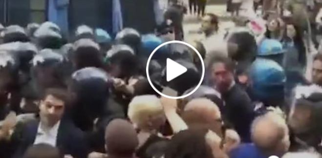 Il gruppo è stato fermato prima di arrivare all’Albero Falcone. Secondo le ultime informazioni trapelate, un carabiniere e due poliziotti sarebbero rimasti lievemente feriti. Le immagini: