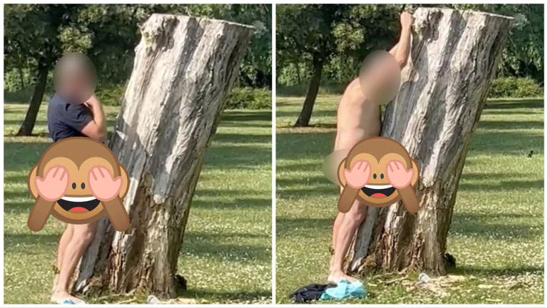 Il filmato ripreso da alcuni spettatori attoniti sembra mostrare un uomo che prima bacia e poi si strofina contro il moncone di un albero in un parco pubblico. Nel caso particolare, si tratta del Queen Elizabeth Gardens a Salisbury, nel Wiltshire.