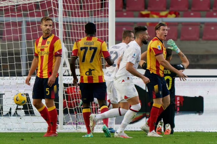 Il Milan fa harakiri e, avanti di due gol, si fa prendere dal Lecce con la sfida che finisce 2-2. Alle reti nel primo tempo di Giroud e Reijnders rispondono quelle di Sansone e Banda nella ripresa. Dopo 10 minuti, Pioli deve già rinunciare a Leao per un guaio muscolare. Al suo posto Okafor. Sono gli ospiti a sbloccare la gara al 28′.
