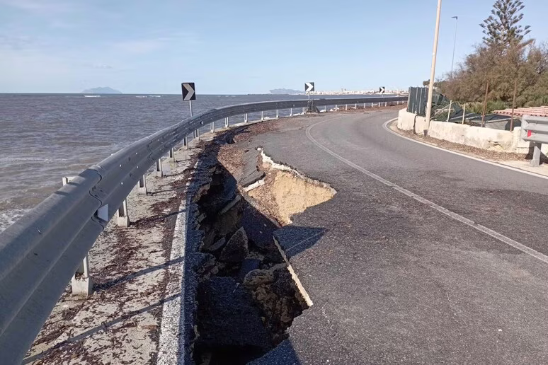 Nell’arco di appena quattro settimane, infatti, è crollata quasi mezza corsia, con il mare che penetra sotto la strada.