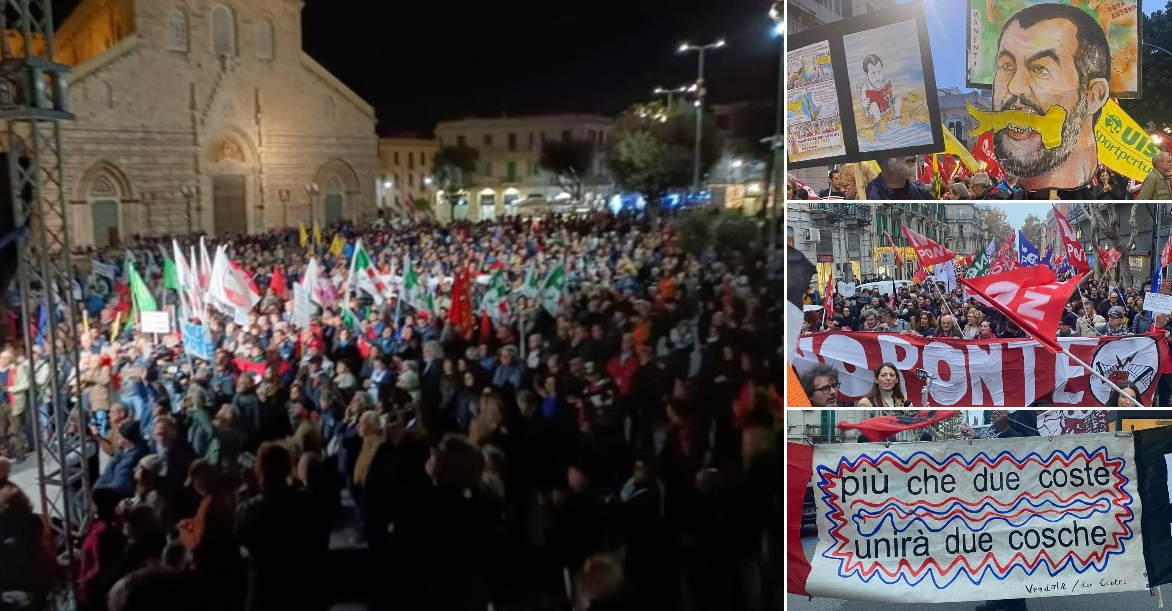 Il corteo ha certamente coinvolto qualche migliaio di persone. L’argomento, è il “no” al Ponte sullo Stretto, dove in tanti (duemila per la questura, cinquemila per gli organizzatori), con l’appoggio di 70 sigle tra associazioni, partiti, sindacati sono scesi in piazza a Messina.