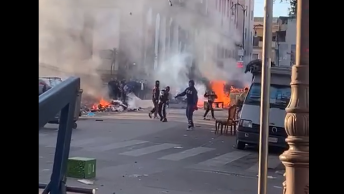Bottiglie di vetro e bastoni sono stati lanciati da alcuni giovani quando sono arrivate le squadre di vigili del fuoco, e la situazione è rimasta tale anche dopo l’arrivo della polizia, i cui veicoli sono stati colpiti con diversi oggetti.