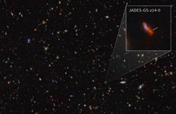 La galassia, denominata JADES-GS-z14-0, risale all’‘alba cosmica’, caratterizzata dalla formazione dei primi sistemi stellari. Sorprendentemente, JADES-GS-z14-0 è molto luminosa e ha già formato circa un miliardo di stelle simili al Sole, nonostante sia oltre 10 volte più piccola della Via Lattea.