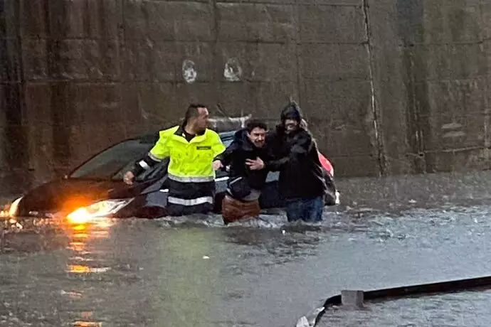 A Messina, il torrente Zafferia è straripato, trascinando via auto in sosta e intrappolando decine di residenti nelle loro abitazioni. Situazione critica anche nei comuni di Alì Terme e Sant’Alessio Siculo, dove l’esondazione dei torrenti Fiumedinisi e Agrò ha costretto l’Anas a chiudere due tratti della statale Orientale Sicula. A Furci Siculo, il sindaco e un assessore (foto sopra) hanno salvato un automobilista bloccato in un sottopasso allagato.