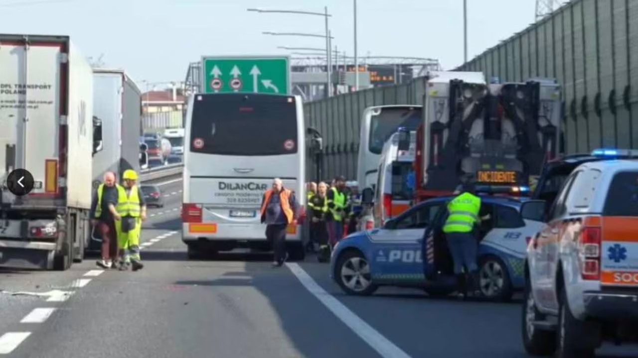Momenti di paura sull’autostrada A4: un pullman con a bordo 44 bambini e alcune insegnanti si è scontrato con un tir all’altezza dell’uscita di Cormano, finendo sul guardrail.