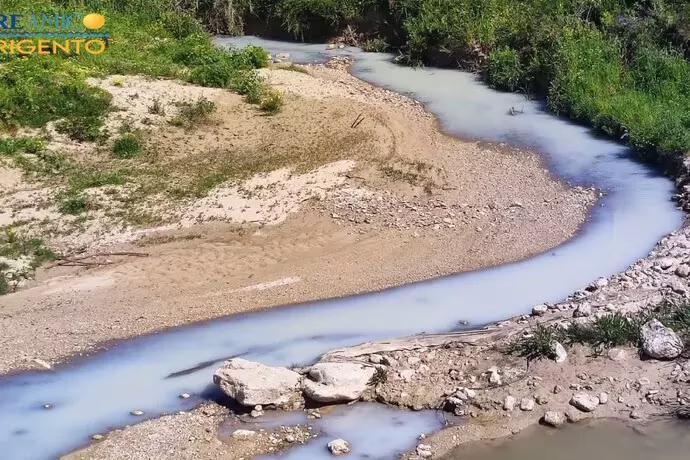 Nell’Agrigentino i fiumi cambiano colore a seconda del calendario: a novembre, a causa della molitura di olive e del fatto che i frantoi vi scaricano le acque di vegetazione, diventano “neri”. Adesso, invece, il fiume Palma è totalmente bianco. Accertamenti sono in corso.