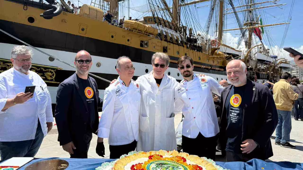 Lo scorso 10 maggio, davanti al veliero più bello del mondo, la Nave Scuola Amerigo Vespucci, il Made in Sicily in collaborazione con la Città di Palermo ha celebrato il valore dell’accoglienza con un gesto dolce e potente: la realizzazione di una cassata monumentale di oltre 60 kg.