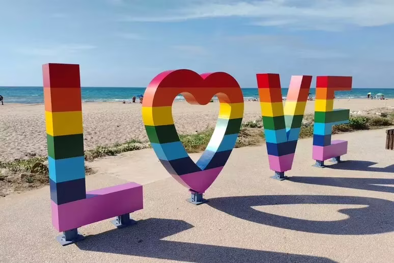 La scritta “Love”, con i colori dell’arcobaleno, campeggia sul lungomare della località balneare di Balestrate, nel Palermitano, a simboleggiare apertura, dialogo e accoglienza.