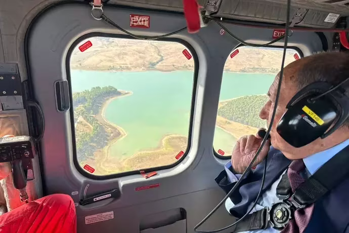 Il presidente della Regione Siciliana, Renato Schifani e il dirigente della Protezione civile regionale Salvo Cocina hanno sorvolato gli invasi di Piana degli Albanesi, dello Scanzano, di Rosamarina che servono il territorio in provincia di Palermo e del Fanaco che serve l’Agrigentino e parte del Nisseno; le condizioni dei bacini, sono apparse migliori rispetto a un anno fa, grazie anche a lavori avviati d’urgenza di riefficentamento delle traverse di adduzione.