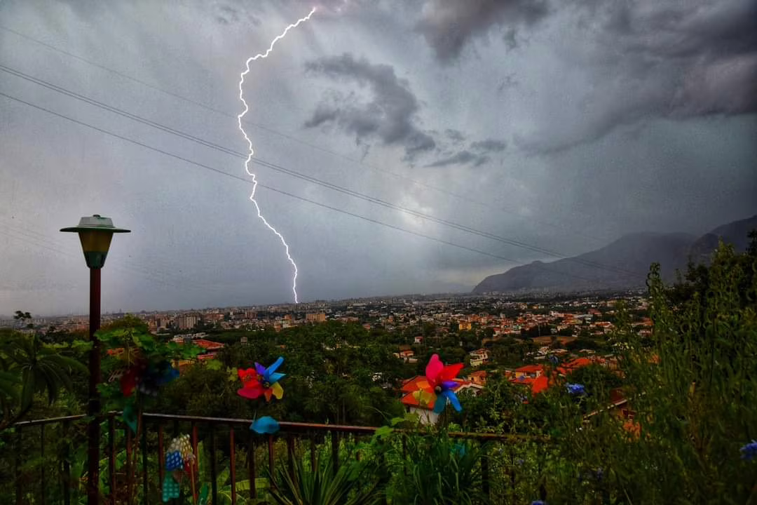 Dopo una mattinata di bel tempo, la città è stata colpita da un forte acquazzone accompagnato da fulmini
