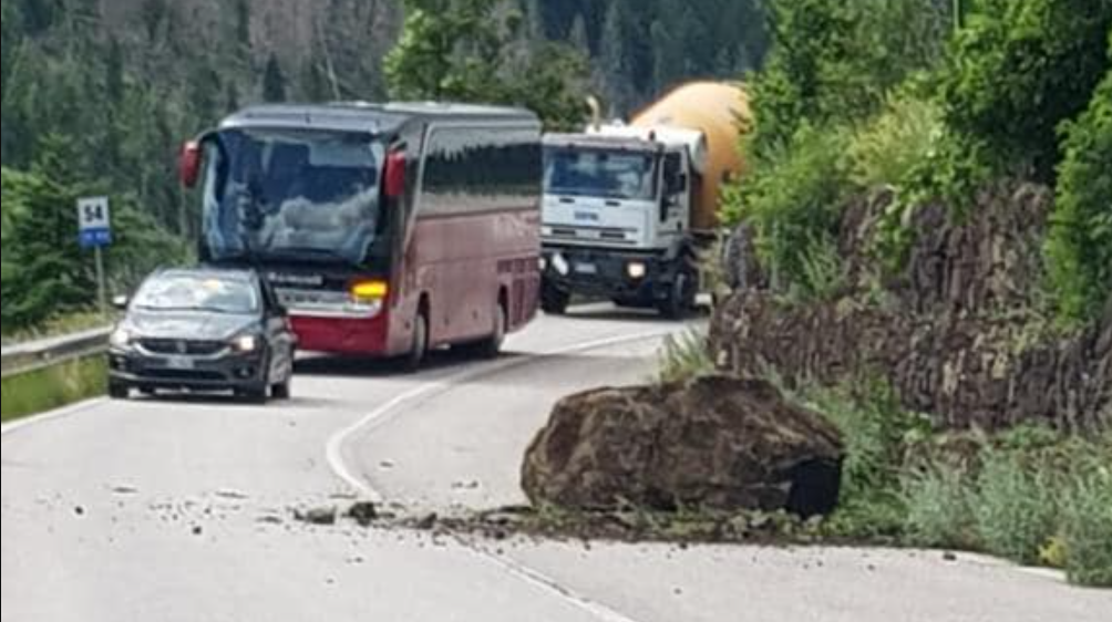 Enorme masso si stacca e piomba sulla strada: paura a Belluno