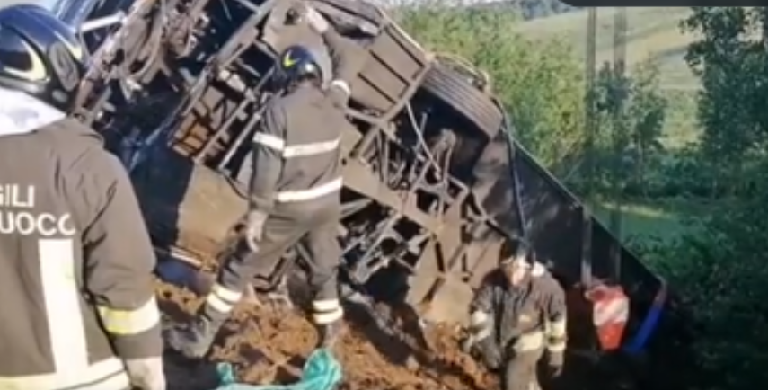 Drammatico incidente nella notte fra un pullman ed alcune auto, sulla autostrada A16: morto un uomo, 14 i feriti
