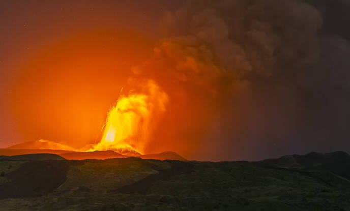 Una nuova eruzione del vulcano siciliano illumina il cielo del Catanese